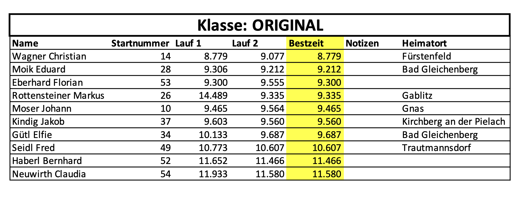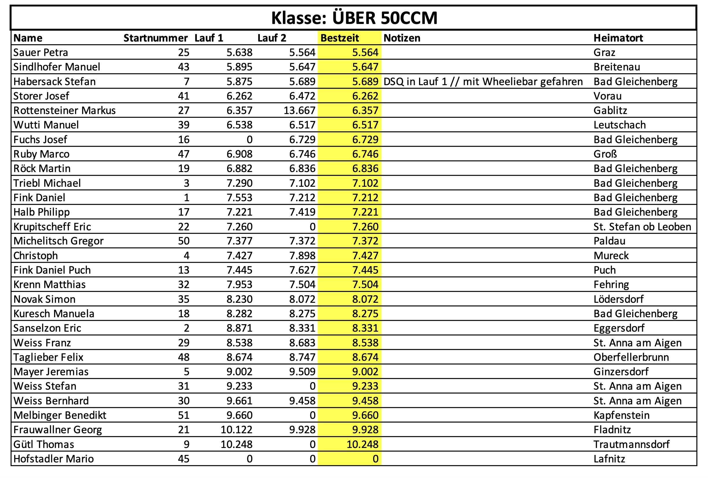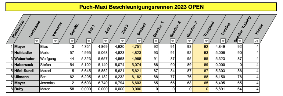 Hier sind die Ergebnisse der Rennen aus 2023: